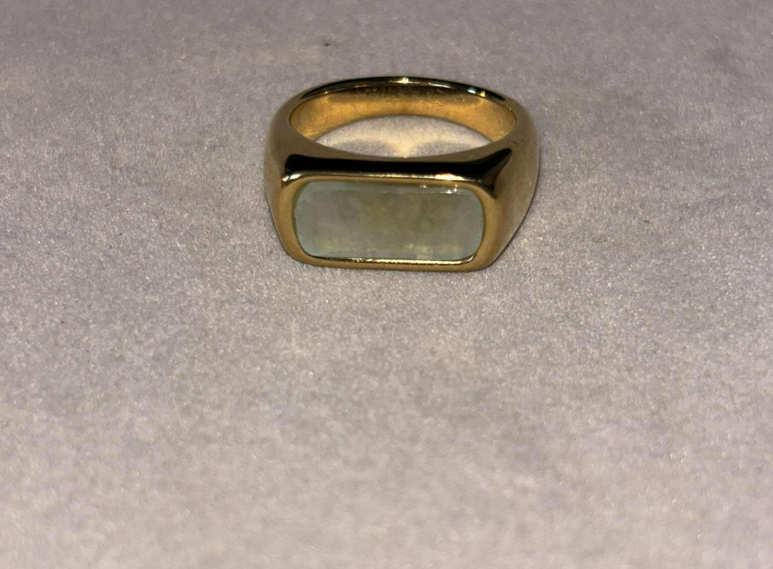 Elevate your style with our 18k gold plated ring featuring a stunning seagreen signet. Crafted with expert precision, this ring exudes elegance and sophistication.